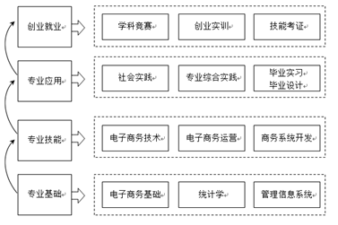 为促进高校毕业生就业,教育部2014年度工作要点明确提出,要引导一批本科高校向应用技术类高校转型。国务院印发《关于加快发展现代职业教育的决定》,全面部署加快发展现代职业教育。按照这一要求,电子商务专业还应增加实践教学学时。要把教学计划中各类实践课程体系理清思路,并使之贯穿大学“四年不断线”。