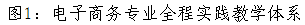 建立以理论教学与实践教学相结合的电子商务专业实验教学体系,并将此实验教学体系系统化、科学化、连续化、全程化地引入电子商务专业教育的全过程,使之“四年不断线”,凸显“全程实践环节”之特色。如图1所示。