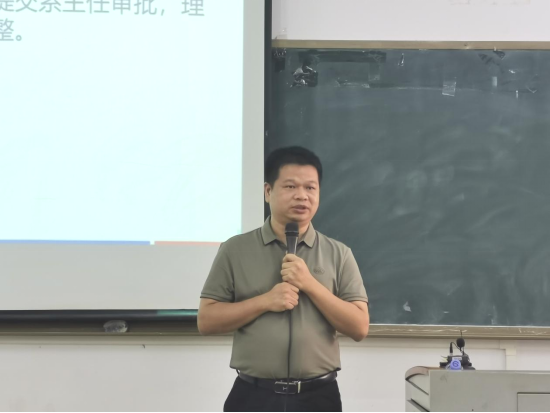 叶仕通副院长对会议内容作出补充,围绕学院重点工作提出具体要求。在实验教学方面,他强调教师要严格规范"三性实验"材料,确保材料完整。在专业建设方面,学院准备增加新专业,进一步优化专业布局。关于教师发展,他特别指出,教师要主动适应AI时代教育需求,积极参与暑期培训等提升专业技能,同时严肃强调教学纪律。最后,他重点介绍了学院未来的发展计划,包括实验教学平台建设、数字教材开发等工作,号召全体教师积极参与课程智能体开发和科研团队建设,共同推动学院高质量发展。