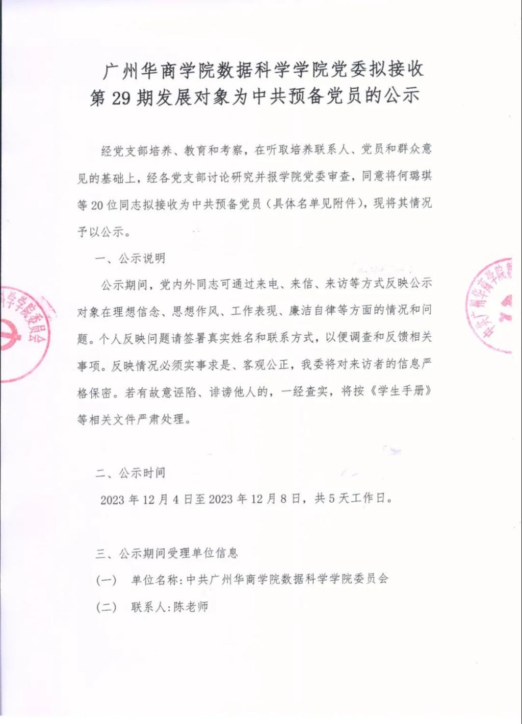 热点新闻 当前位置: 首页 >> 正文 伟德国际victor1946数据科学学院党委拟接收第29期发展对象为中共预备党员名单公示 2023-12-04 经党支部培养、教育和考察,在听取培养联系人、党员和群众意见的基础上,经各党支部讨论研究并报学院党委审查,同意将何璐琪等20位同志拟接收为中共预备党员(具体名单见附件),现予以公示如下: 【关闭】