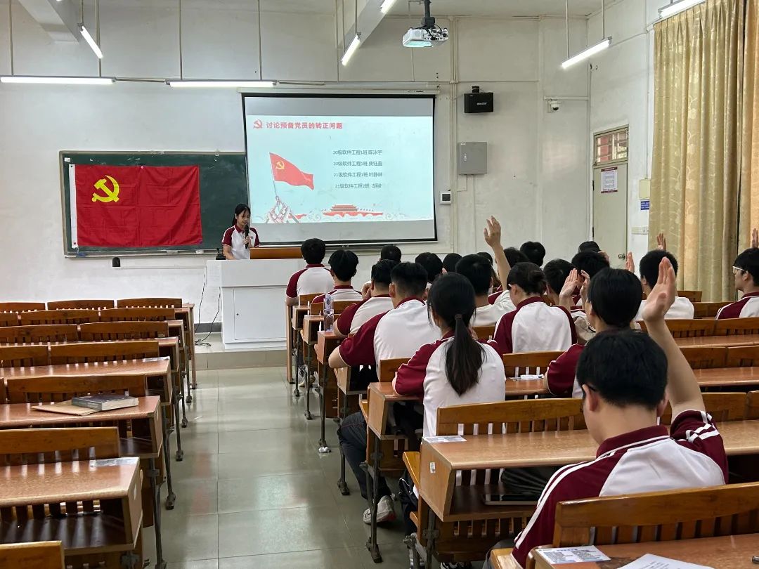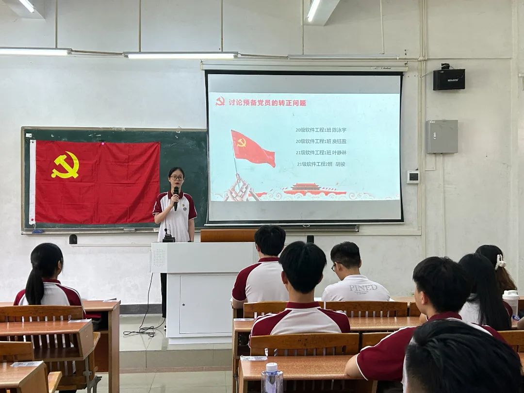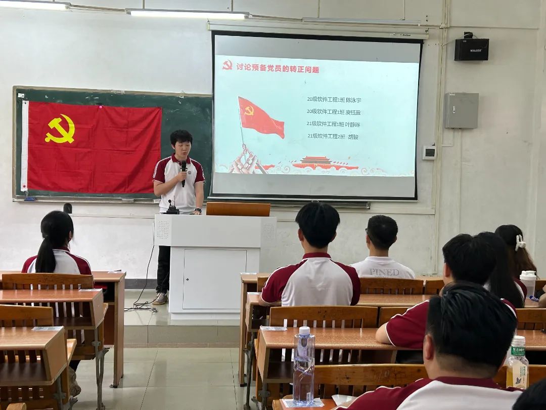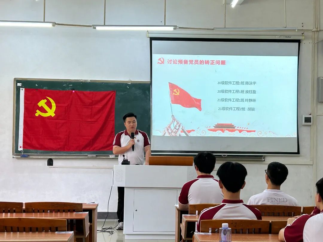 2024年5月24日中午12:30,数据科学学院学生第四党支部在励志楼D102顺利召开预备党员转正大会。大会由林柽莼同志主持,学生第四党支部书记蓝光进老师、党支部全体党员参与了本次会议