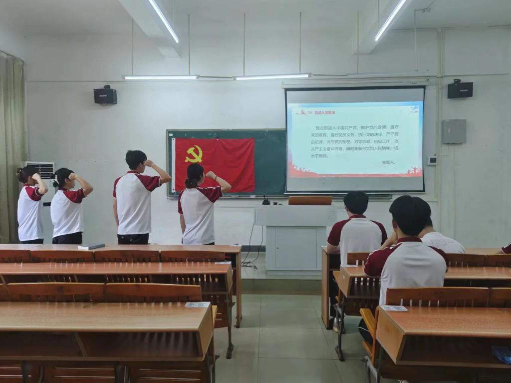 在叶静琳同志的主持下,新党员宣读入党誓词。