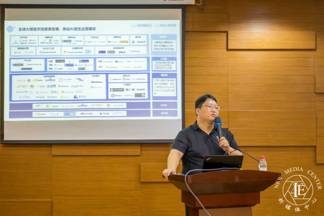 张鑫博士的讲座内容涵盖了大模型的基本原理,其在产业应用中的赋能作用和人工智能驱动行业创新发展的重要性。与会人员就如何运用大模型进行学习和应用进行了深入讨论。张鑫博士着重强调了大模型在人工智能领域的重要性和应用前景。他还提到百度是国内第一家将大模型在实际应用中进行落地的公司。他分享了百度在大模型应用方面所取得的成果,并介绍了未来对大模型应用的期望。