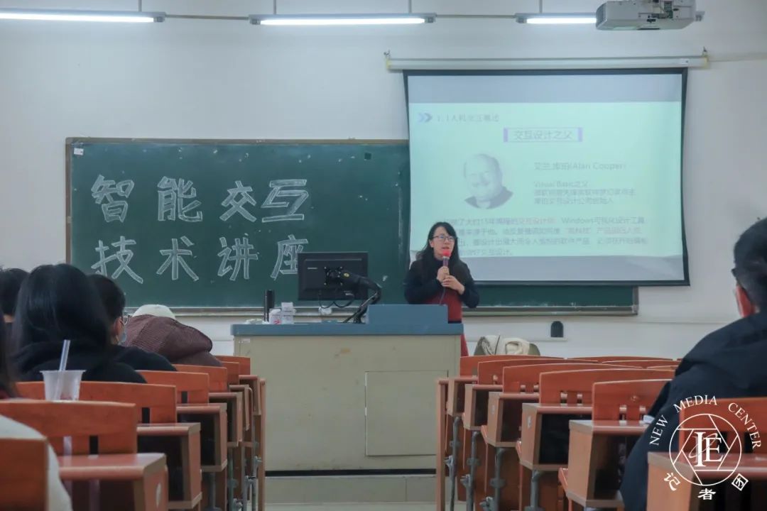 与同学们的互动讨论。紧接着,许丽娟老师结合实际应用,为同学们讲解了智能交互技术的用户体验与交互设计。她提到,用户体验包含了智能交互技术对用户的刺激及感觉反应,其中视觉和听觉上的反应最为常见。讲解过后,许丽娟老师以翻译笔为例与现场同学们进行互动讨论,探讨翻译笔在人与机器的交互设计中应该实现怎样的功能。通过互动,让同学们对智能交互设计充满了兴趣。