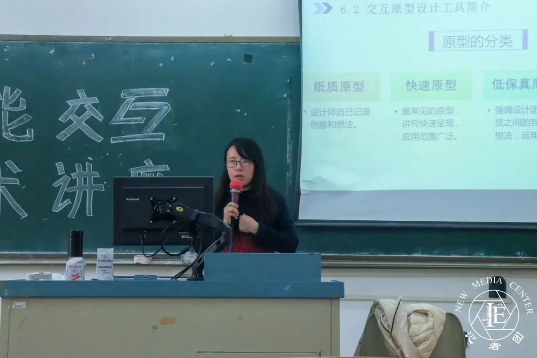 许丽娟老师讲解了交互设计的原则及交互中的原型设计,除此之外,她向同学们介绍了交互原型设计常用的软件,方便有兴趣的同学自行去学习。最后,她结合现实生活中的智能语音软件对语言交互智能对话设计进行介绍分析。