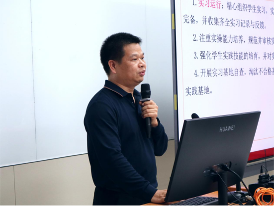 叶仕通副院长在会上详细介绍了学院本科教学合格评估工作的推进情况。他表示,近年来,学院在师资队伍建设、专业建设、学生竞赛等领域取得了令人瞩目的成绩。师资队伍结构不断优化,专业特色日益凸显,学生在各类学科竞赛中屡获佳绩。然而,他也坦诚地指出,在评估过程中,学院仍面临一些亟待解决的问题与挑战,如部分教学环节的规范化管理有待加强、教学资源配置需进一步优化等。叶副院长强调,学院将始终秉持“以评促建、以评促改、以评促管、评建结合、重在建设”的原则,持续优化教学管理流程,确保评估工作顺利推进。
