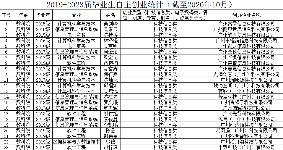 ▲学生部分创业情况