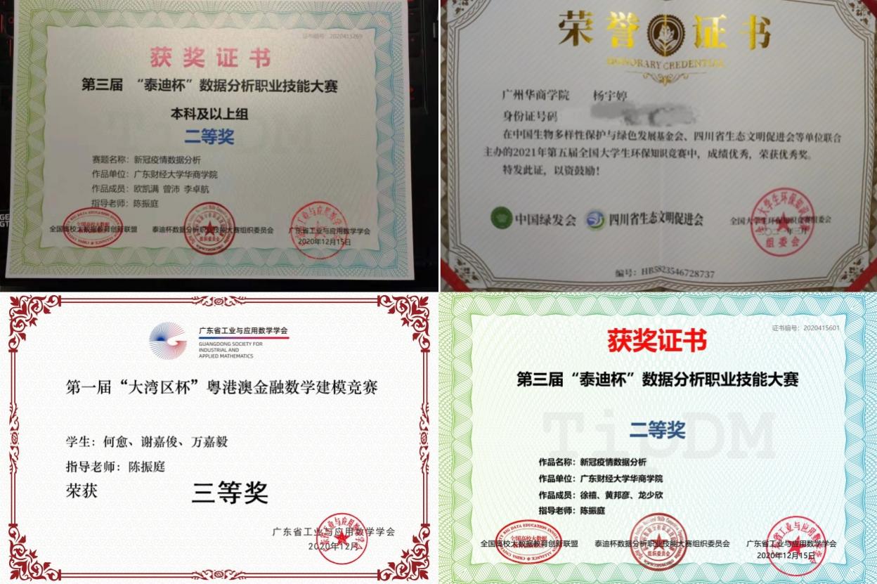 在校期间,曾多次获院优秀生奖学金、2016年在校期间获2016广东省高校“中星杯”网络信息安全攻防大赛(增城韶关赛区)三等奖及获华商学院全额奖学金赴澳大利亚墨尔本澳洲国际商学院参加GBCA华为项目培训。