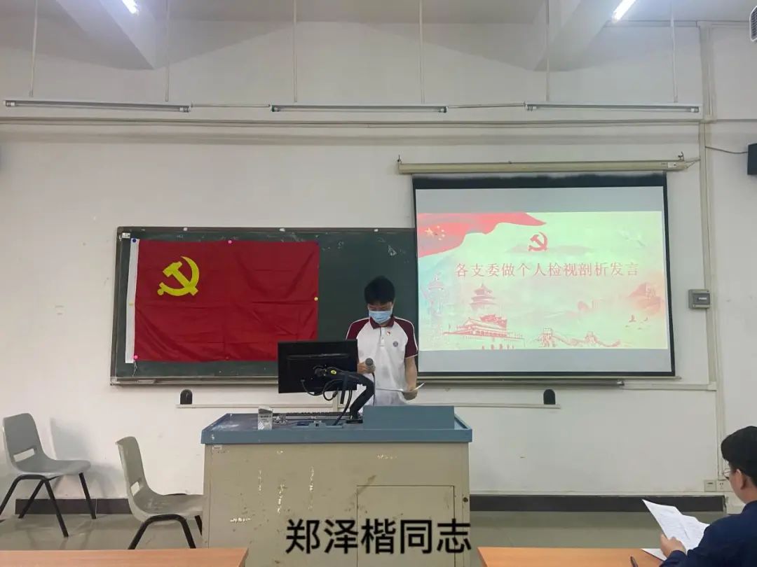 党支部支委依次作个人检视剖析发言。各支委通过自我检视,开展批评与自我批评,深知在党支部的不断教育引导下政治思想水平和党性得到提高,更加坚定入党动机,更加严于律己,同时也认识到自身存在许多不足,正视不足,改正不足,认真学习贯彻习近平新时代中国特色社会主义思想,不断增强“四个意识”、坚定“四个自信”、做到“两个维护”,努力成为一名优秀的共产党员。