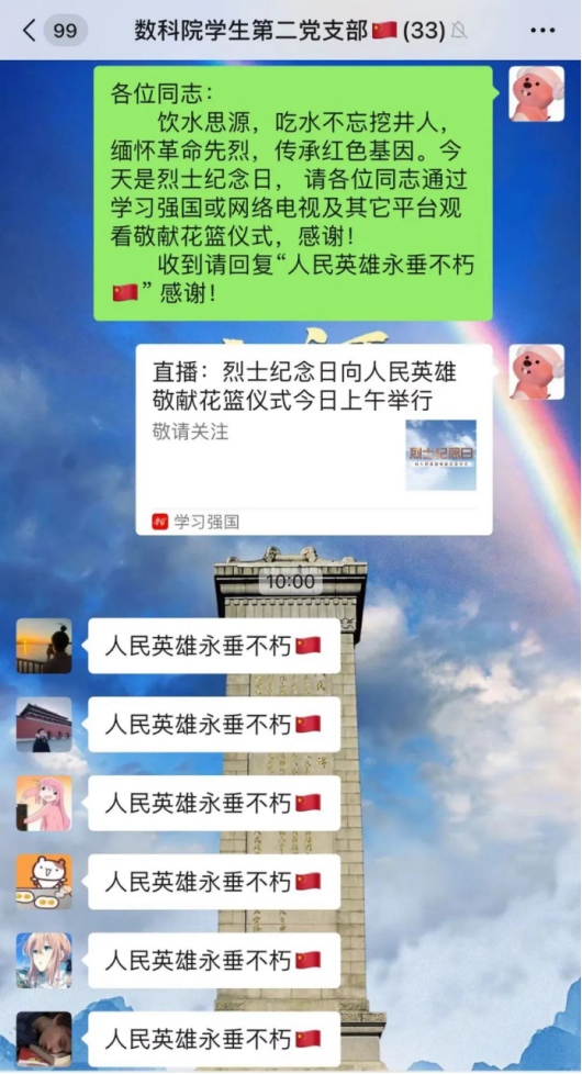 数据科学学院师生在观看纪念仪式后进行热烈讨论,对无数前赴后继、奋勇献身的先烈表达了崇高敬意。