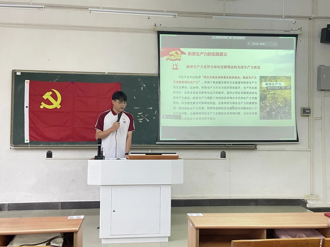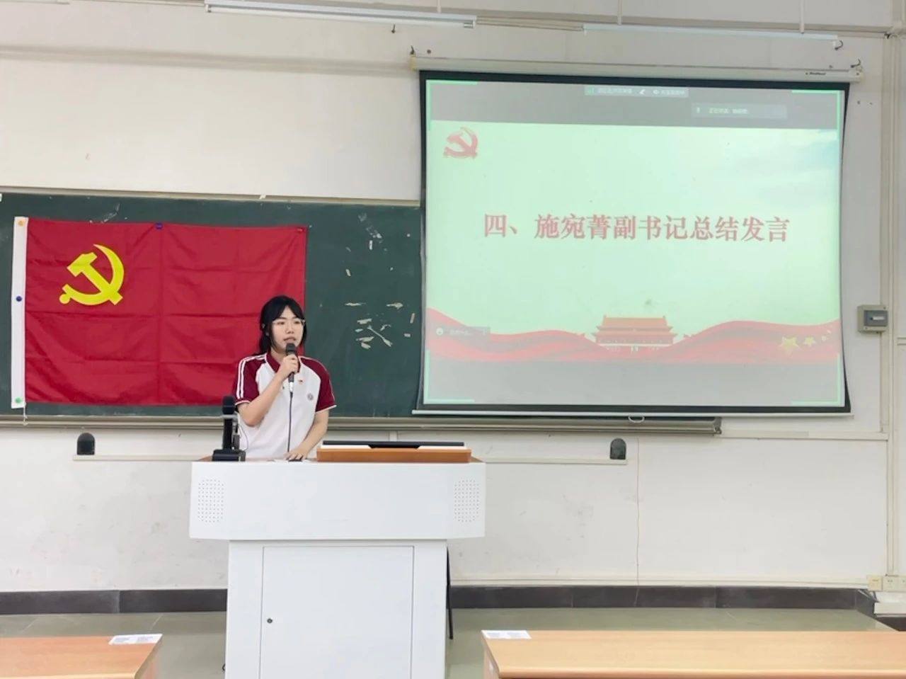 施宛菁副书记表示通过今天的学习,我们深入了解了新质生产力的科学内涵、重大意义以及实践路径。新质生产力是推动社会进步和经济发展的重要力量,也是我们党在新时代的重要任务之一,它不仅关乎国家的长远发展,更关乎我们每个人的切身利益。作为大学生党员,我们要不断加强学习,提高自身素质,以更加饱满的热情和更加务实的作风,将所学知识投入到新质生产力的发展中去,在各领域各方面充当排头兵和生力军,奋力书写为中国式现代化挺膺担当的青春篇章。