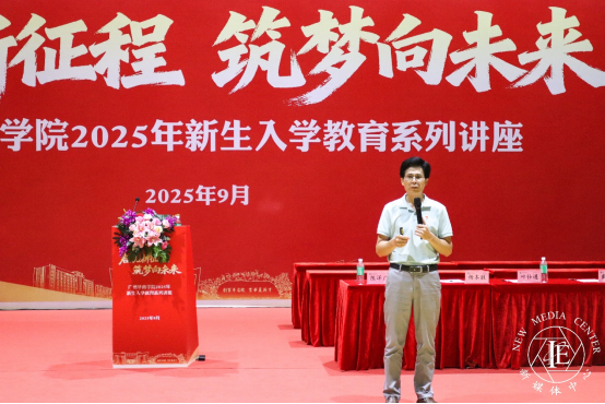 秋意渐浓,华商学院体育中心的灯光在926日晚为2025级伟德国际1946全体新生点亮。在顺利完成新生见面会各项议程后,学院党委书记、副院长杨波为同学们带来了一场主题鲜明、内涵深刻的"思政第一课",引导新生从红旗渠精神中汲取奋进力量,明确新时代青年的责任与担当。