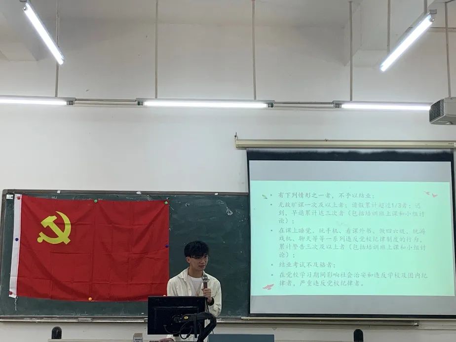 李坚豪同志表示,希望入党积极分子珍惜学习机会,严格遵守党纪,在党课学习过程中,仔细聆听,认真思考,勤做笔记,在党课培训中有所收获。同时也祝各位入党积极分子顺利通过考试,拿到结业证书。在之后的学习上、思想上、行动上逐步的向党组织靠拢,争取早日成为一名共产党员。
