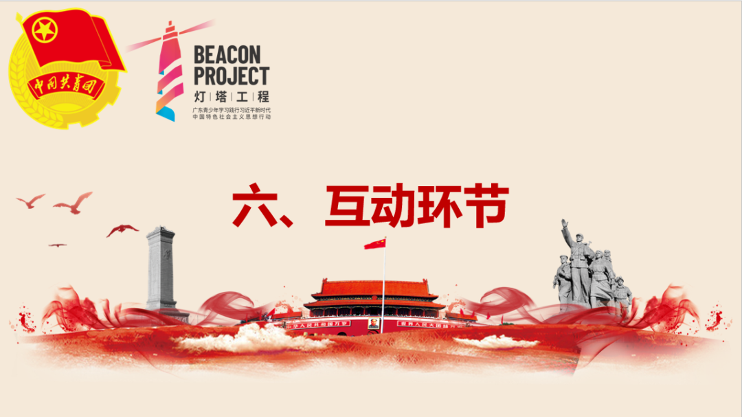 在这一环节中,主持人提出了有关全国两会和疫情防控的问题,同学们也都积极踊跃的发言。通过这一环节,相信同学们对我国时事政治有了更深的了解,希望在今后的学习当中同学们能够在党史学习中明确自我定位,树立远大理想,成为有理想,有本领,有担当的时代新人。