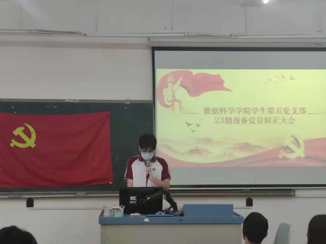 2022年5月7日17:45,数据科学学院学生第五党支部于励志楼D102召开第23期预备党员转正大会。出席本次会议的有数据科学学院学生第五党支部书记吴诗雨老师、支部全体党员。大会由陈炽堃同志主持。