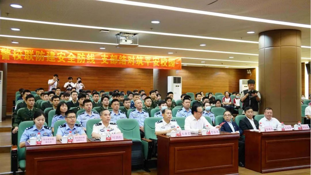 为深入贯彻党的二十大精神关于“统筹发展和安全,建设更高水平的平安中国”的要求,推动学习贯彻习近平新时代中国特色社会主义思想主题教育走深走实,5月19日上午,广东华商教育集团与广州市公安局增城区分局在华商学院中央图书馆报告厅隆重举行“警校联动筑牢安全防线,支部结对共建平安校园”启动仪式,警校合作单位共同签署共建协议书。
