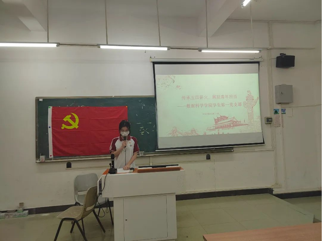 今年是五四运动104周年,为缅怀革命前辈、传承五四精神,数据科学学院学生第一党支部于2023年5月17日在励志楼D103开展“传承五四薪火,展现青年担当”主题党日活动,出席本次会议的有数据科学学院学生第一党支部全体在校党员。本次会议由许楚婷同志主持。