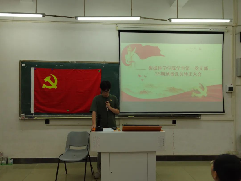 2023年6月8日19:45,数据科学学院学生第一党支部于励志楼D102召开第26期预备党员转正大会,出席本次大会的有数据科学学院学生第一党支部书记裴祖君老师以及数据科学学院学生第一党支部全体党员。