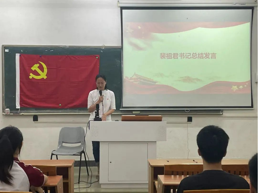 数据科学学院学生第一党支部书记裴祖君老师对本次主题教育专题学习会做了总结发言,首先指出要全面贯彻党的教育方针,坚持以人民为中心的发展思想,以立德树人为根本任务,以为党育人、为国育才为根本目标,以服务中华民族伟大复兴为重要使命,引导学生树立坚定的理想信念,永远听党话、跟党走,矢志奉献国家和人民。最后希望每个党员以优秀为榜样,在推进中国式现代化伟大征程中做一名有理想、敢担当、能吃苦、肯奋斗的新时代好青年,让青春在全面建设社会主义现代化国家的火热实践中绽放绚丽之花,让奋斗的足迹印在实现中华民族伟大复兴的征途上。