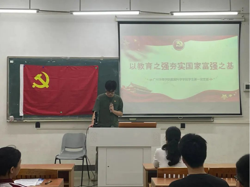 教育兴则国家兴,教育强则国家强。为了陶冶学生道德情操,拥有勤学不辍、强国有我的志向和抱负,数据科学学院学生第一党支部于2023年6月8日19:00在励志楼D102开展“以教育之强夯实国家富强之基”主题教育专题学习会。参与本次会议的有数据科学学院学生第一党支部书记裴祖君老师、党支部全体党员,会议由陈炽堃同志主持。