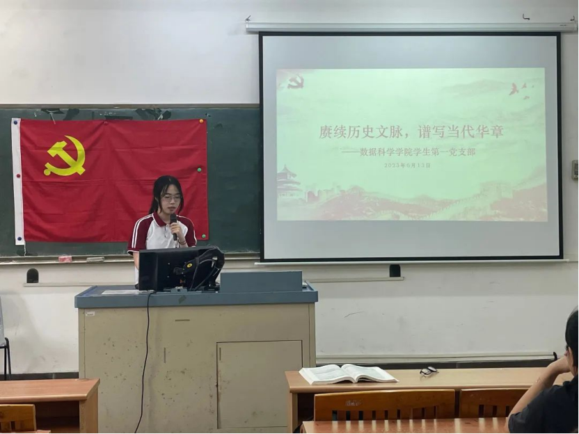 “文运与国运相牵,文脉与国脉相连”。为传承发展中华优秀传统文化,推进建设中华民族现代文明,数据科学学院学生第一党支部于2023年6月13日在励志楼D203开展“赓续历史文脉,谱写当代华章”主题党日活动,出席本次会议的有数据科学学院学生第一党支部全体在校党员。本次会议由施宛菁同志主持。