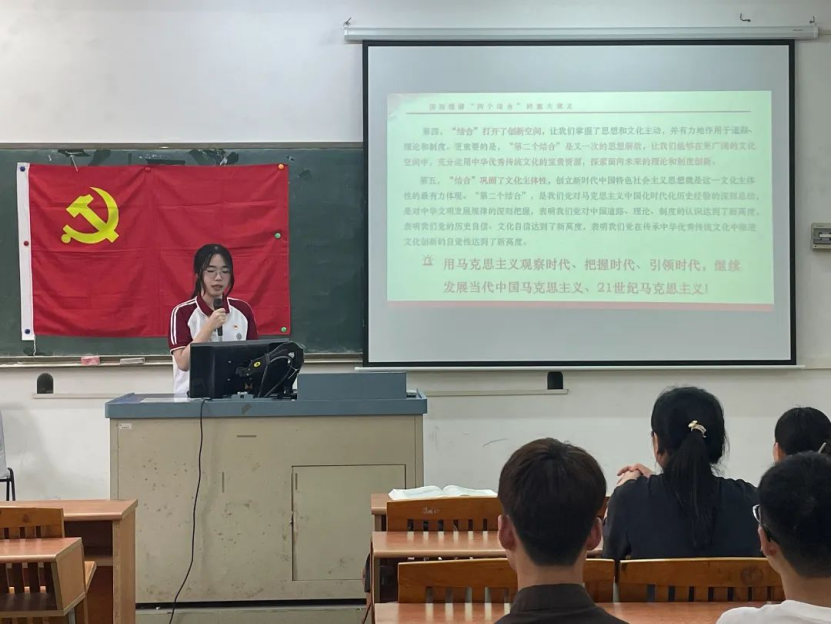 回望历史,路在脚下。“两个结合”让中国特色社会主义道路有了更加宏阔深远的历史纵深,拓展了中国特色社会主义道路的文化根基。“第二个结合”更是又一次的思想解放,让我们能够在更广阔的文化空间中,充分运用中华优秀传统文化的宝贵资源,探索面向未来的理论和制度创新,脚踏必由之路,谱写时代华章。施宛菁同志强调,我们作为新时代青年,更要用马克思主义观察时代、把握时代、引领时代,在理论学习和实践行动上继续发展当代中国马克思主义、21世纪马克思主义。