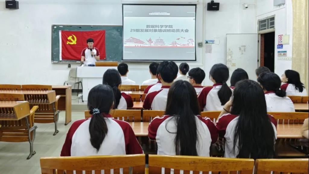 为调动发展对象学习党课的积极性,端正学生入党动机,同时让学生更加清楚地了解党课学习的重要性以及注意事项,数据科学学院于2023年10月24日19:00在增城校区励志楼D106顺利召开第29期发展对象培训动员大会(四会校区发展对象参加线上腾讯会议)。出席本次大会的有数据科学学院学生第二党支部书记谢嘉希老师、学生第四党支部书记蓝光进老师、学生党支部支委会成员以及第29期发展对象,本次大会由胡骏同志主持。