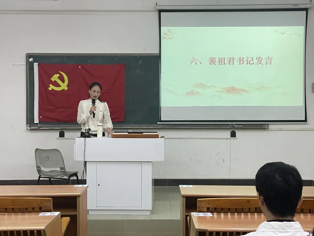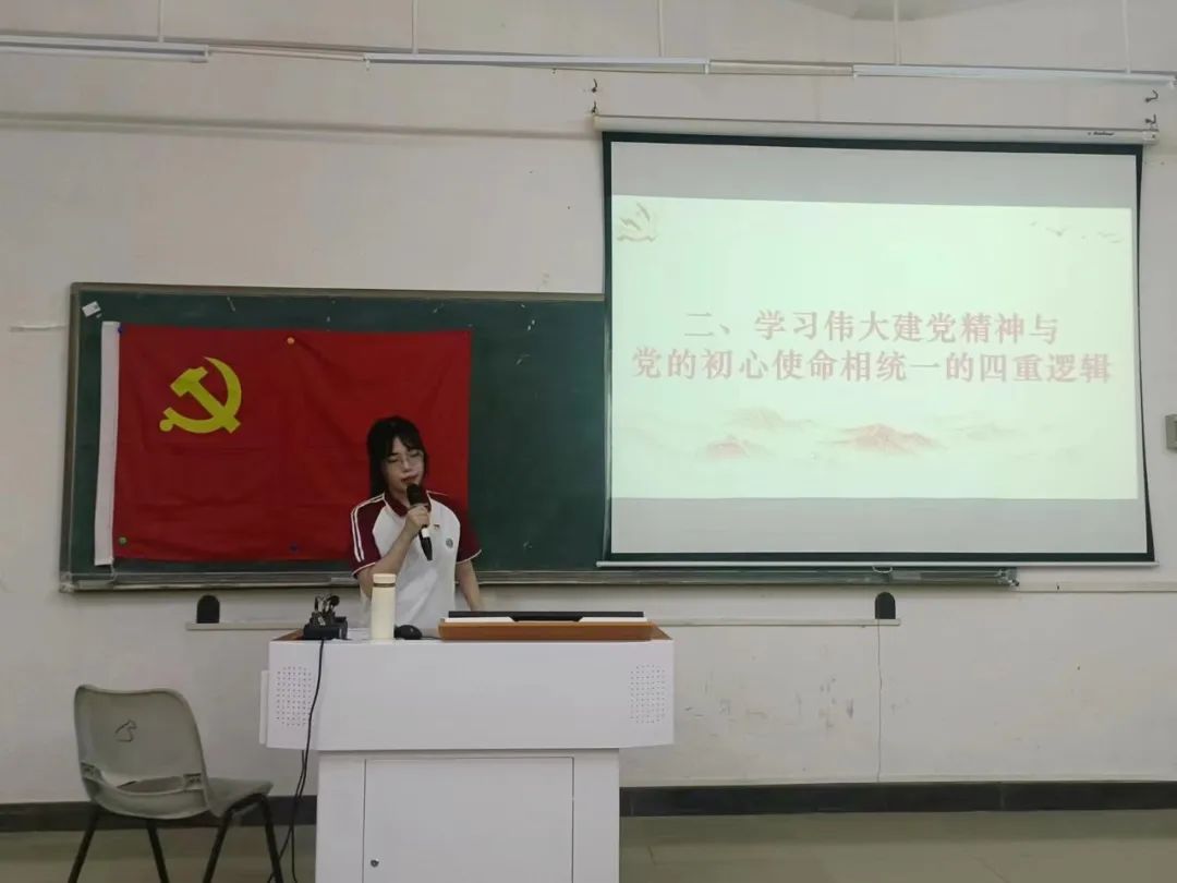 施宛菁同志带领与会党员学习了伟大建党精神与党的初心使命相统一的四重逻辑。中国共产党一经诞生,就把为中国人民谋幸福、为中华民族谋复兴作为自己的初心使命,形成了伟大建党精神。伟大建党精神与党的初心使命相统一,都是激发全党奋勇前进最持久最强大的精神力量。深入学习两者逻辑关系,进一步帮助学生党员汇聚磅礴力量,在弘扬伟大建党精神中担当中华民族伟大复兴的大任。