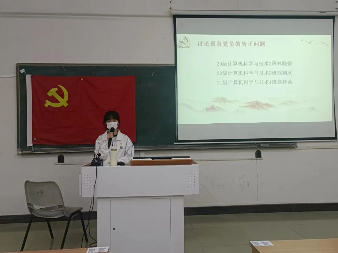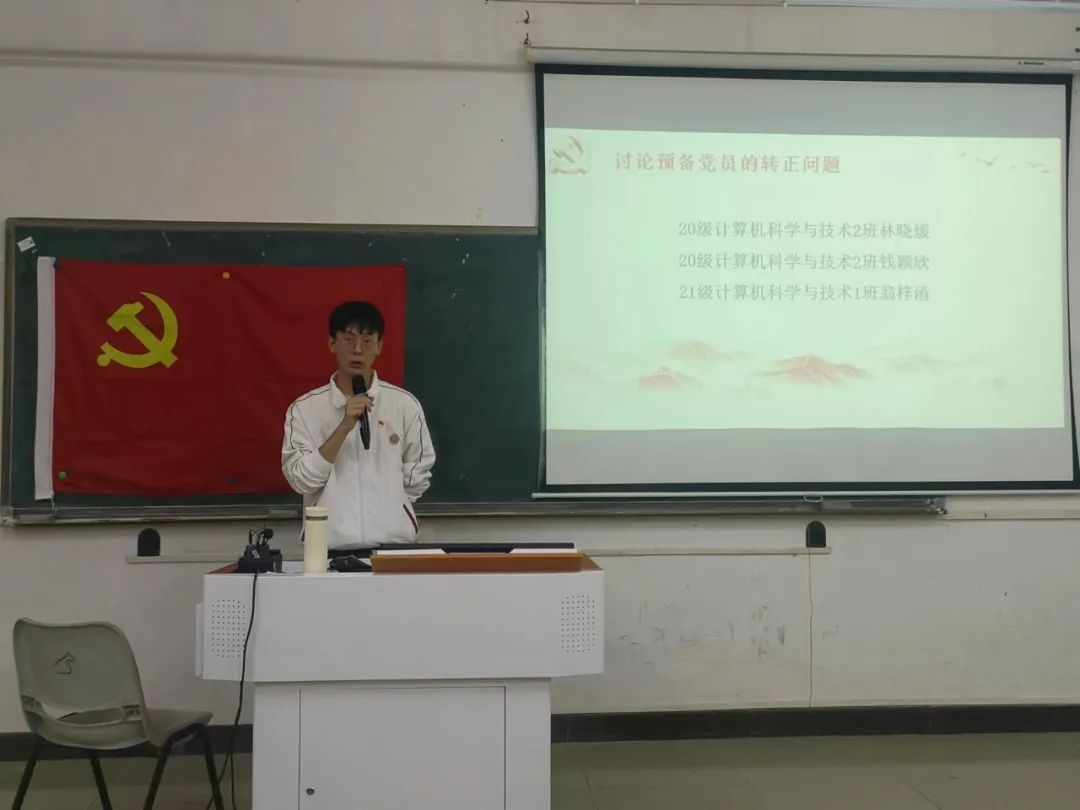 接着,由黄珮恩同志报告申请转正的预备党员的审查、公示等情况。