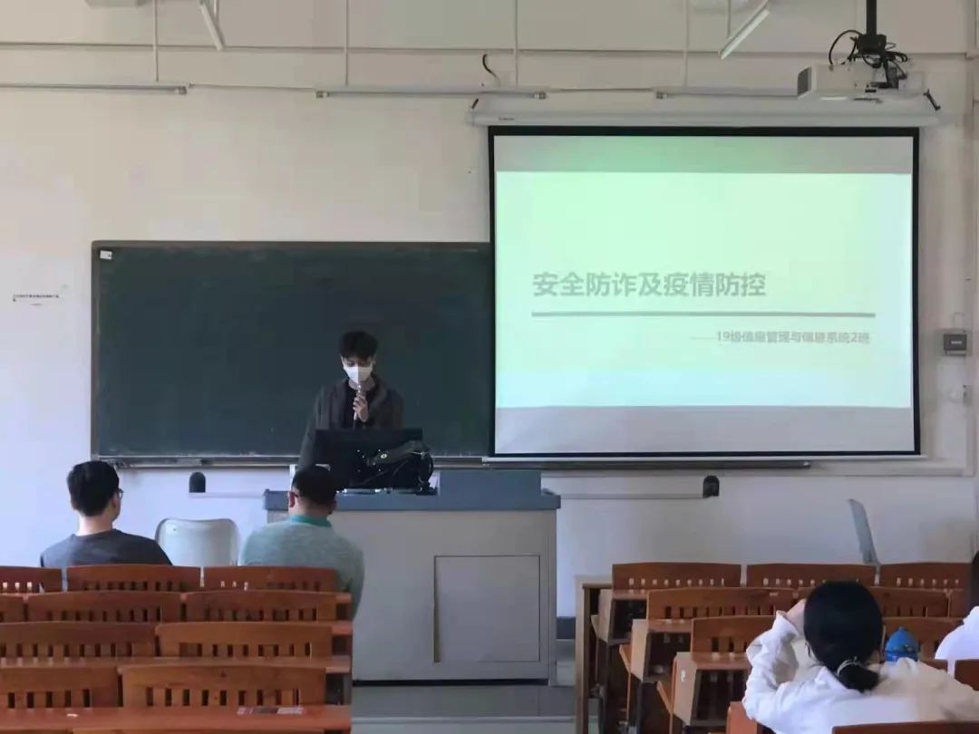 分别从防诈安全、网络安全、交通安全、消防安全等方面,给同学们讲述应对策略,特别是注意各类网络诈骗警情、校园贷诈骗等。