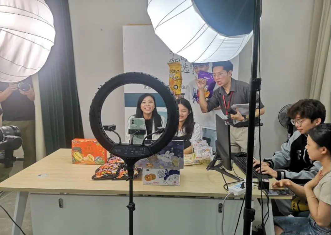 为确保此次试播活动顺利开展,校企双方做了充分的准备工作,课程团队老师带领学生组建了直播运营团队,明确任务分工,各小组选取直播产品,分析货品优势,挖掘产品卖点,策划宣传海报,商讨明确场景搭建风格,反复优化直播脚本。在试播现场指导老师认真指导学生,耐心解答学生们的问题,帮助学生们克服困难,提高实训效果。