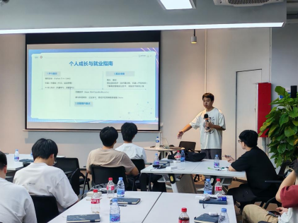 第二场讲座中,讲师以个人成长经历为例,分享了自己从大学迷茫期到大三学习Java后确定发展方向的心路历程。他就“如何踏入人工智能赛道”这一主题提供了实用性的就业指导,帮助学生更好地规划职业路径。