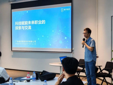下午的学术活动包括两场专题讲座。第一场讲座以“科技赋能未来职业的探索与交流”为主题。讲师介绍了人工智能技术的整体演进历程,为学生展示了AI技术未来的发展方向和应用前景。