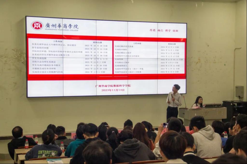 由数据科学学院院长助理杨波开展进行毕业论文/设计、毕业实习工作动员。他主要从毕业论文/设计的进度安排、筹备阶段、开题阶段、论文撰写过程以及答辩进行讲解,强调了不同进展中需要注意的相关事项,加强了各位毕业生对如何顺利开展并完成毕业论文/设计进行的深入了解。
