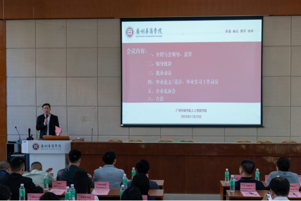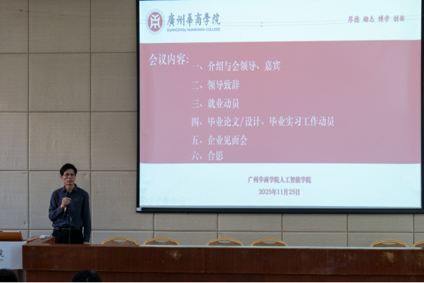 为精准对接AI行业人才需求,助力2026届毕业生打通“学业收尾”“实习实践”“就业落地” 全链条发展通道;同时搭建校企协同育人平台,推动企业需求与人才培养深度融合,2025年11月25日,伟德国际1946于励志楼 C209 举办 2026 届毕业生就业动员暨校企见面会。本次会议由伟德国际1946伟德国际办公室副主任蓝光进主持。