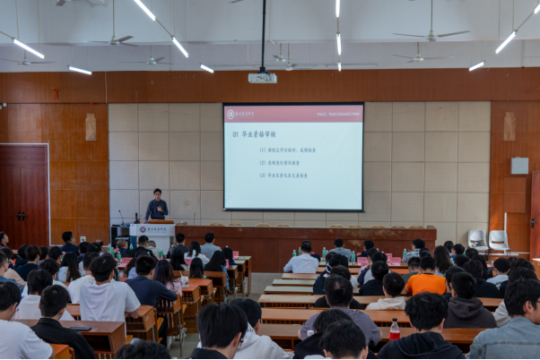 会议接近尾声之际,叶仕通副院长作出重要补充强调。他指出,毕业论文作为学业成果的关键体现,其质量直接关乎学位授予,一旦在教育部抽检中被认定不合格,极有可能面临取消学位的严重后果。因此,他殷切建议同学们务必高度重视论文原创性,将重复率严格控制在10%左右,鼓励同学们主动与指导老师保持密切沟通,及时请教论文撰写过程中遇到的问题,遇到任何困难或疑问,同学们可随时向辅导员或学院等相关部门反馈。此外还特别提醒,毕业实习材料不仅是个人实践能力的证明,更关系到学校的整体合格评估,必须确保真实规范、完整有序。