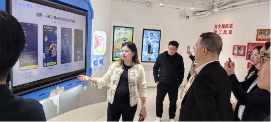 在趣丸网络科技有限公司刘静雯总裁助理的陪同下,吕副校长一行深入公司展厅,仔细参观了涵盖数字人、AIGC(人工智能内容生成)以及前沿的生成式音频等一系列人工智能创新产品。值得一提的是,参观过程中,大家亲身体验了趣丸科技的“文生音乐”产品。在这一体验过程中,陈晓坚以“华商学院”为主题生成了不同风格的音乐,大家深刻感受到了生成式音频大模型的强大功能和巨大潜力。该模型不仅能够模拟多种音乐风格,还能够创造出新颖的旋律和和声,充分展示了AI在艺术创作和创意表达方面的卓越才能。
