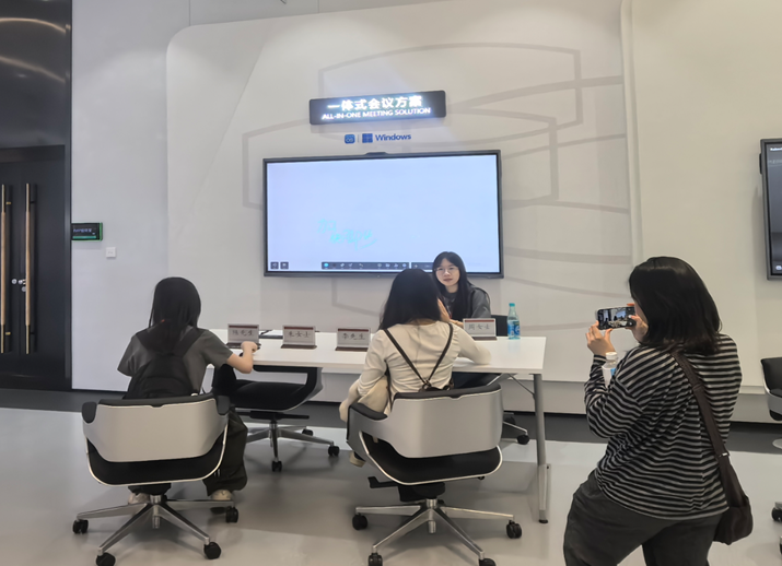 随后,师生走进视源全球展厅。这里汇聚了企业在智慧教育、高效会议、智能家居等领域的创新成果。从熟悉的“希沃”智慧教学产品到引领协同办公的MAXHUB会议平板,丰富的场景化解决方案展示了技术如何深度融入生产与生活。
