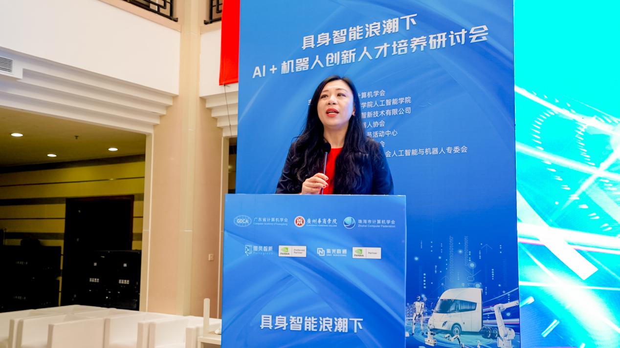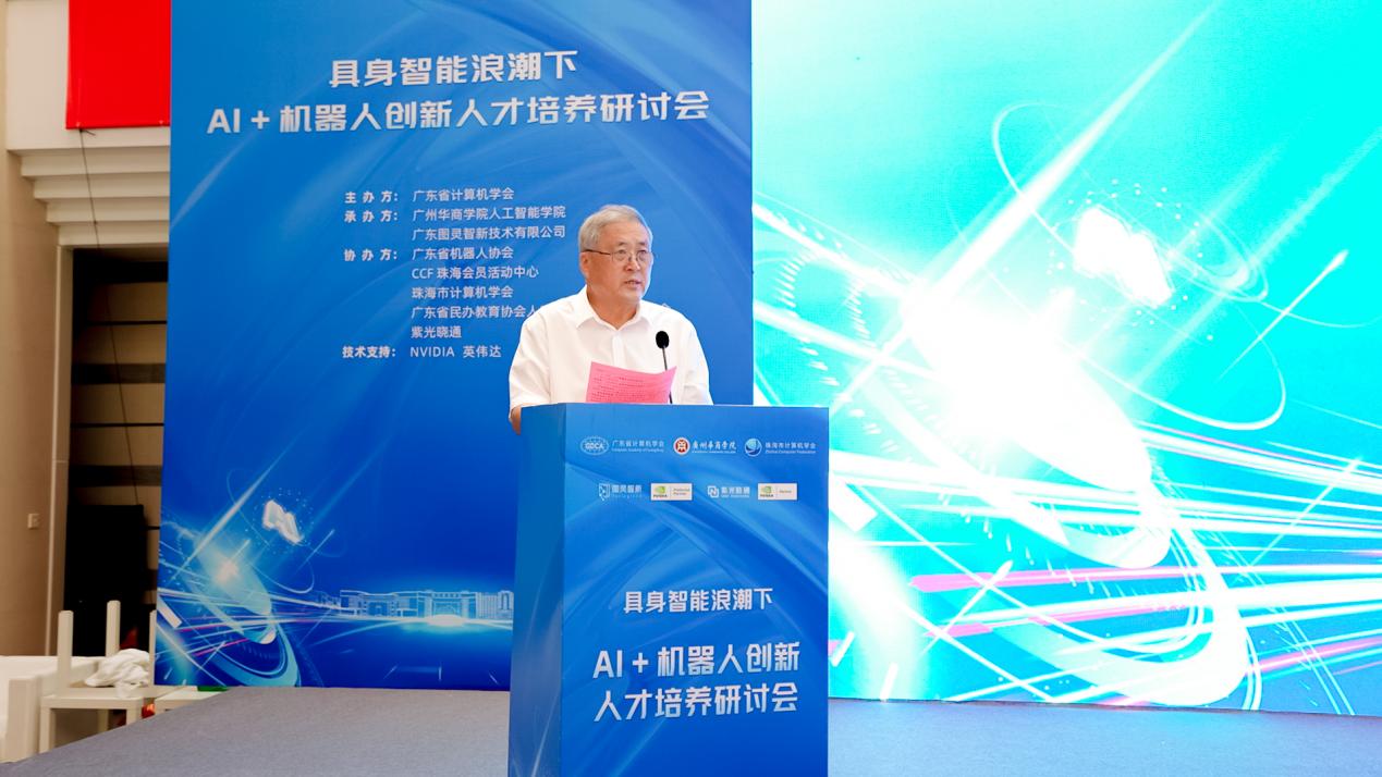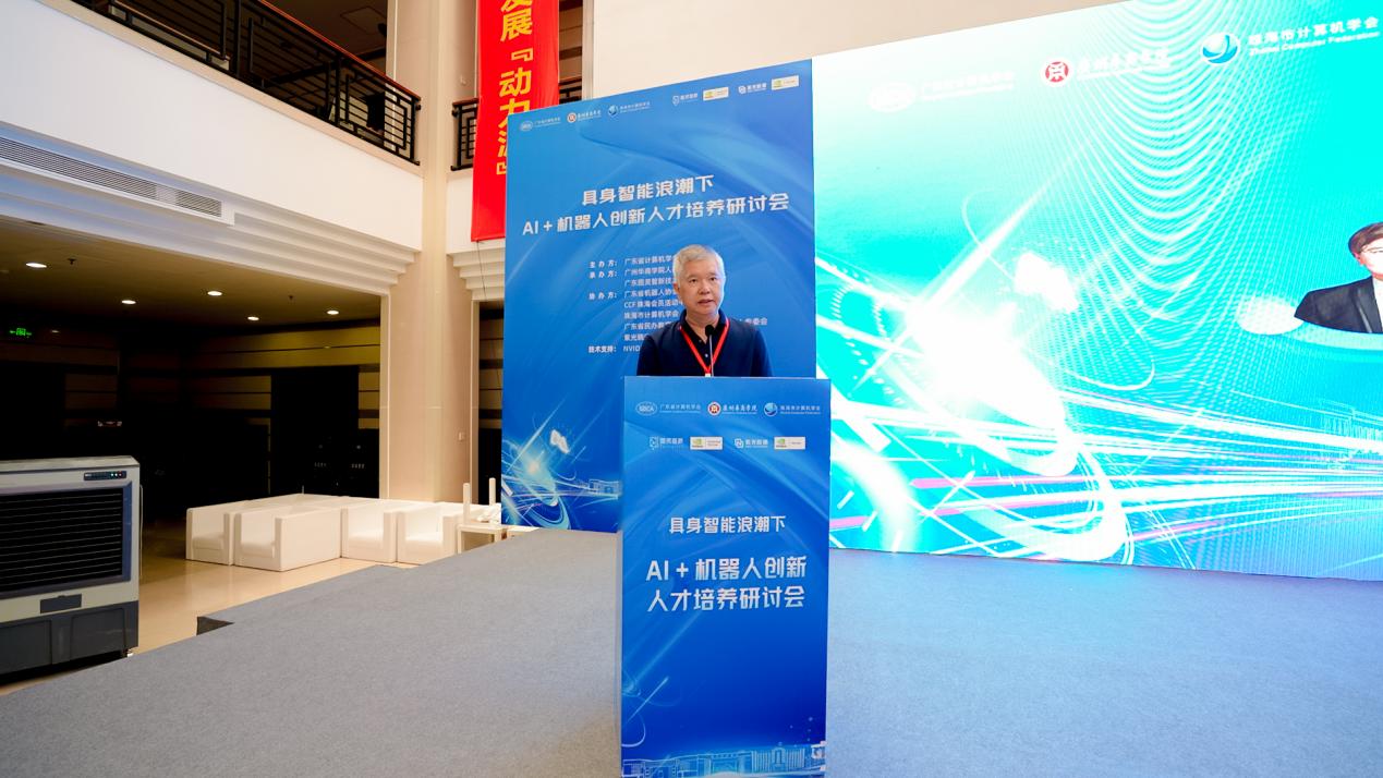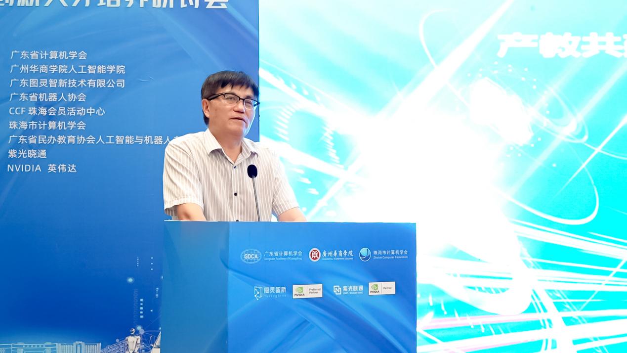 广东省计算机学会理事长韩国强教授高度肯定了华商学院在产教融合方面的探索,强调AI与机器人深度融合对教育体系带来全新挑战,尤其在跨模态感知、自主决策等关键技术方面需高校与企业协同突破。
