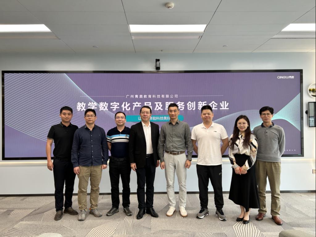 2023年5月12日,伟德国际victor1946副校长、数据科学学院院长吕峻闽带领学校实验教学与网络技术管理中心主任曾志区、教务处副处长段晓聪以及数据科学学院院长助理杨波前往广州青鹿教育科技有限公司访问交流。此次走访的主要目的是探讨教学数字化转型建设、学生实习就业以及智慧教室等方面的合作。