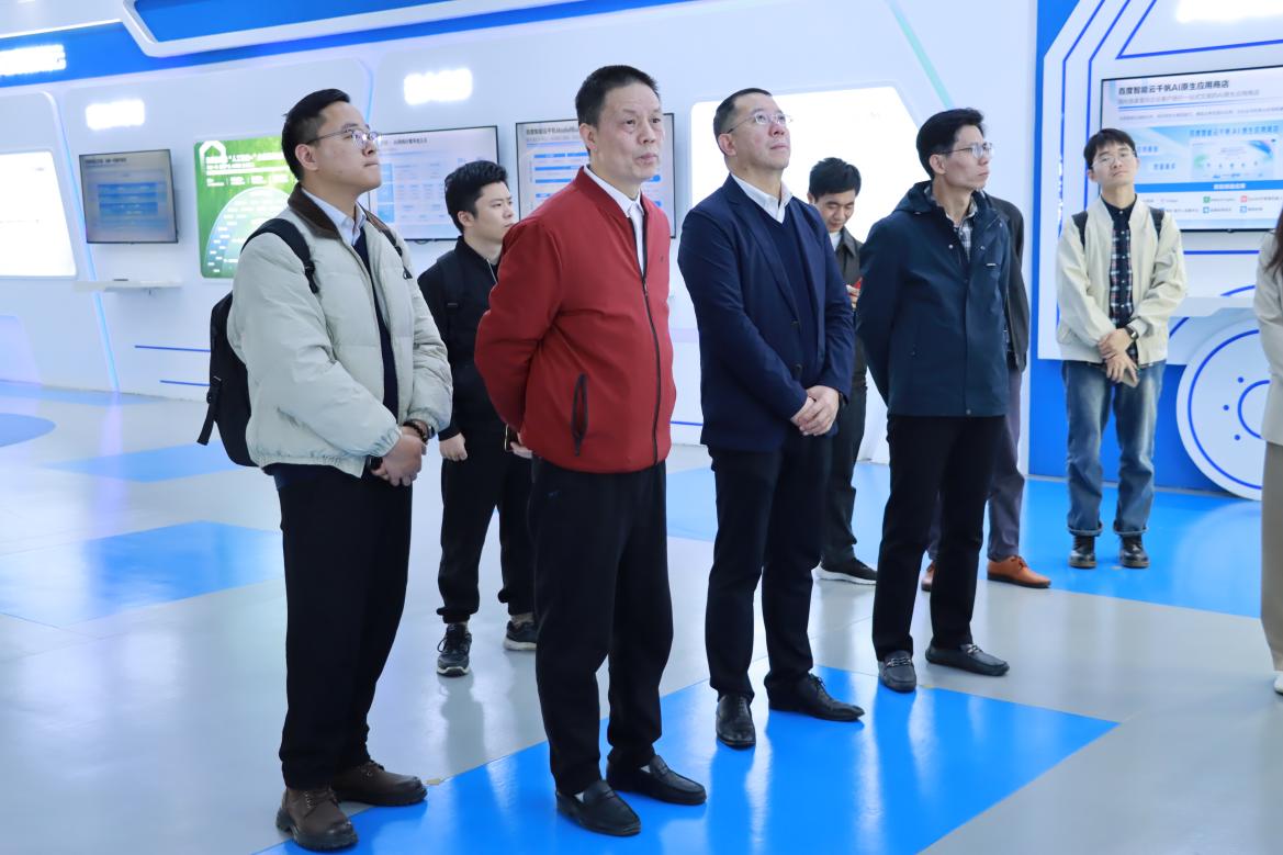 座谈结束后,行业销售总监许育宇引领伟德国际victor1946代表团参观了百度公司的展厅。展厅内,工作人员详细介绍了百度Apollo Park基地的发展历程,展示了百度智能云“人工智能+”企业服务全景图、百度智能云千帆APPBuilder以及百度百舸·AI异构计算平台3.0等核心产品与业务。通过实地参观,代表团成员对百度在人工智能领域的前沿技术及应用场景有了更为直观和深入的了解。