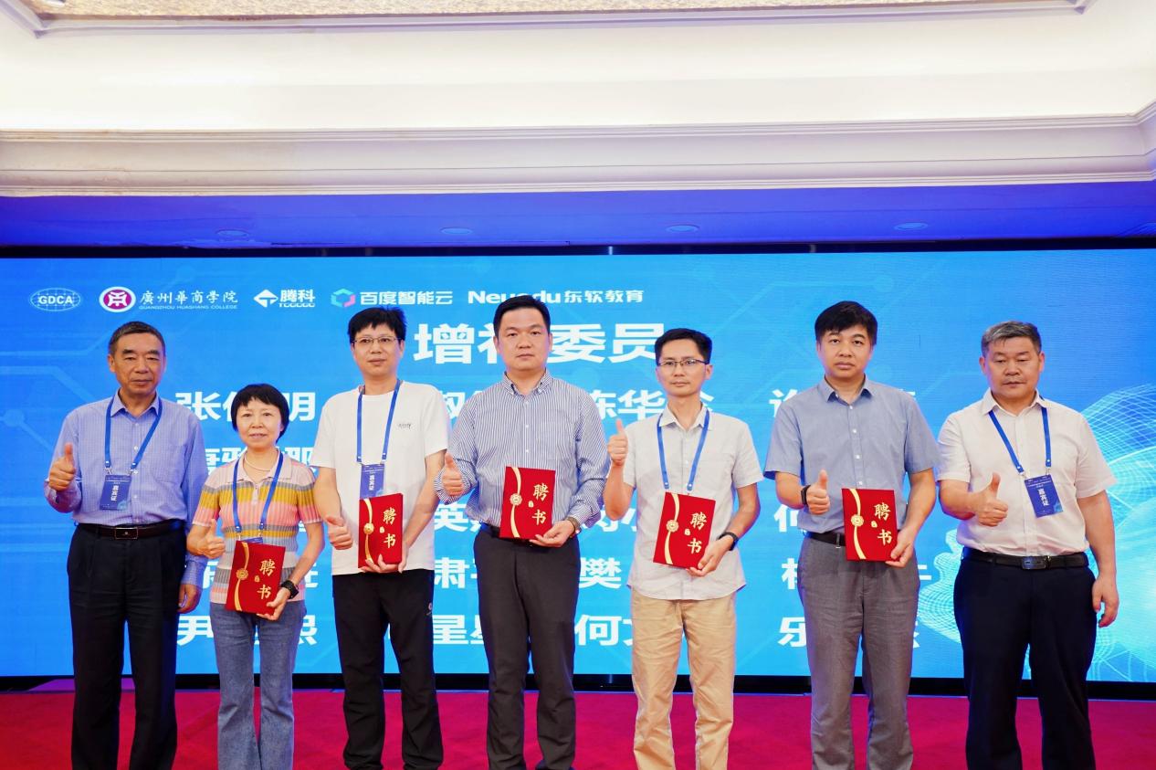 开幕式上还举行了广东省计算机学会民办教育工作委员会新增委员证书颁发仪式,形成覆盖“教育产业科研”的全链条智库网络。同时举行了华商学院与百度、中软国际共建“人工智能与大数据省级现代产业学院”的签约仪式,华商学院与科技巨头达成两项战略合作:携手百度共建省级现代产业学院,百度将投入AI开发平台及企业实战项目等资源;同时联合华为(中软国际)共同开发"鸿蒙+AI"课程体系,聚焦智能硬件开发与端侧大模型部署领域,打造特色专业群。这两项签约标志着产教融合从资源协作迈向深度生态共建的新阶段。