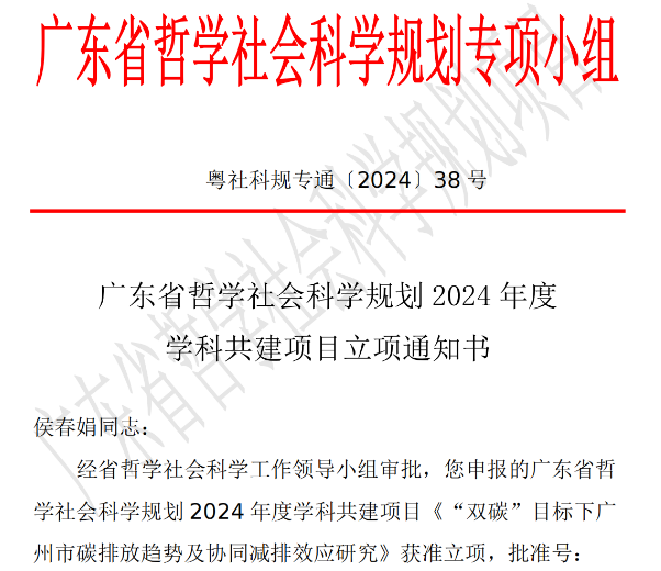 在最新公布的广东省哲学社会科学规划2024年度学科共建项目拟立项名单中,我院人工智能领域专家侯春娟教授以其在“双碳”目标研究领域内的杰出贡献,成功入选。侯教授主持的项目“双碳’目标下广州市碳排放趋势及协同减排效应研究(GD24XGL029)”旨在深入探究广州市在追求“碳达峰”与“碳中和”过程中的碳排放动态,以及如何通过协同机制实现减排目标。
