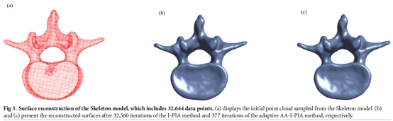 在2023年,戴经国教授独创性地提出了一种用于表面重建的快速算法。该算法通过交替使用 Anderson外推与隐式渐进迭代逼近(I-PIA),能够快速从点云数据收敛。该算法在迭代过程中采用固定步长来增强收敛性。为了进一步提高计算效率,本文进一步探讨了一种自适应步长调整策略用于表面重建算法。在每次迭代过程中,步长会根据当前的残差值自适应调整——较大的残差可能需要较大的步长,而较小的残差可能允许较小的步长。数值实验表明,在相同的重建误差条件下,自适应步长算法比固定步长方法 所需的迭代次数明显更少,计算时间也显著降低。这些改进显著提升了表面重建的计算性能,并为进一步的研究和应用提供了新的思路。