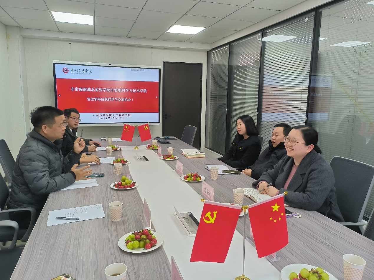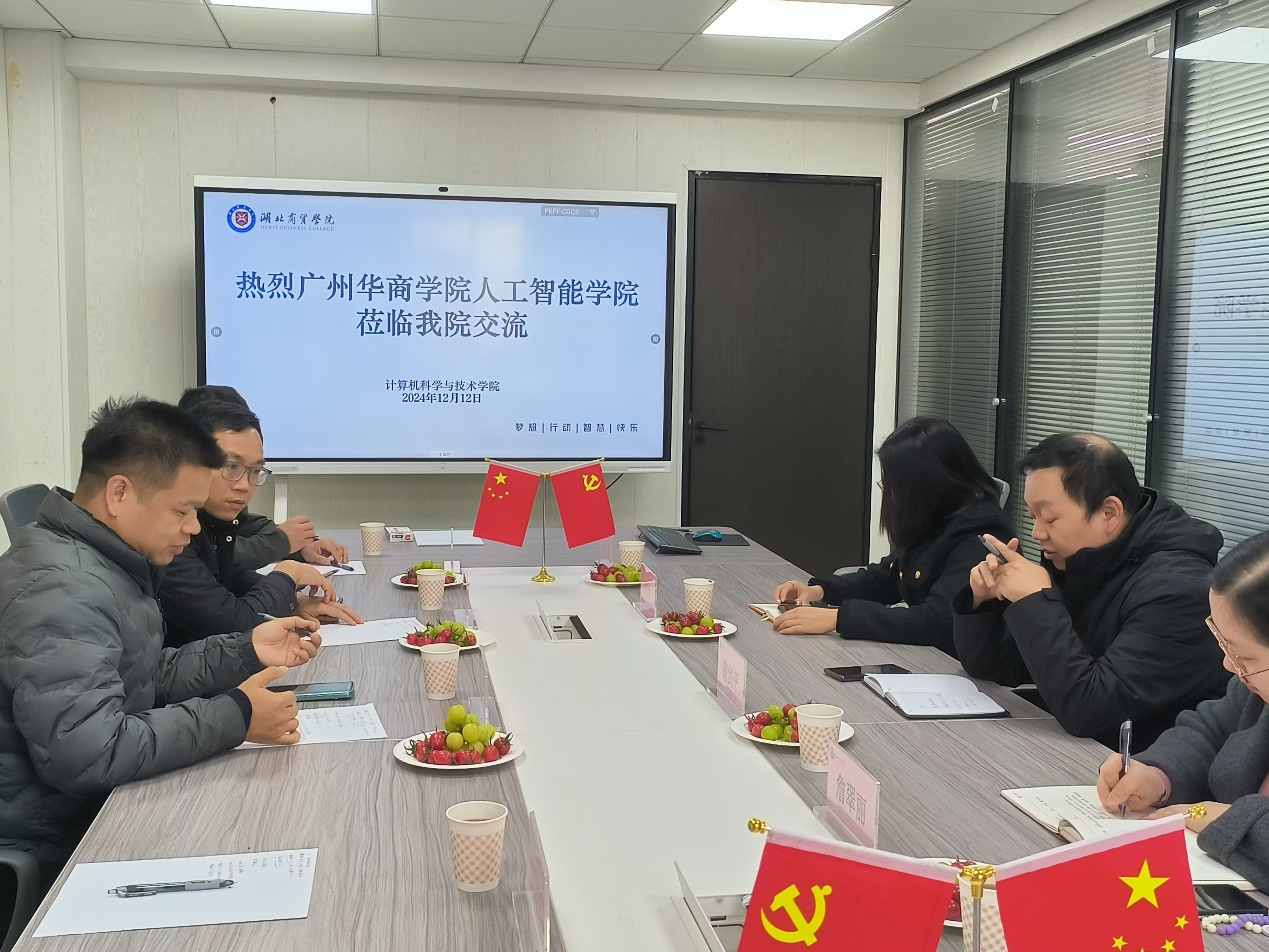 2024年12月12日,为更好地应对即将到来的2026年本科教学工作合格评估,组织规范好学院的教学管理工作,伟德国际1946组织了一次赴湖北商贸学院计算机科学与技术学院的调研学习活动。本次调研由我院副院长叶仕通带队,一行6人与湖北商贸学院进行了深入的交流与探讨。