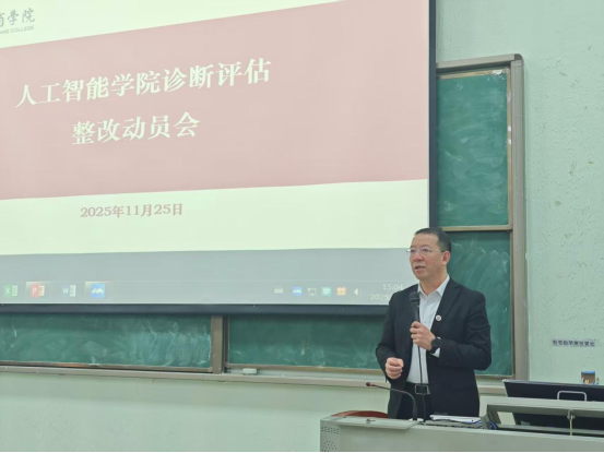 202511月25日下午,伟德国际1946于励志楼A408召开全体教师大会暨诊断评估整改动员会会议围绕学校近期开展的诊断评估,深入剖析教学工作中存在的问题,部署下一阶段整改任务,动员全体教师以评促建、以评促改,全面提升教育教学质量。戴经国院长主持会议,吕峻闽副校长出席会议并作指导讲话,学院党委书记、副院长杨波,学院党委副书记何顺发,副院长叶仕通及全体教师共同参会